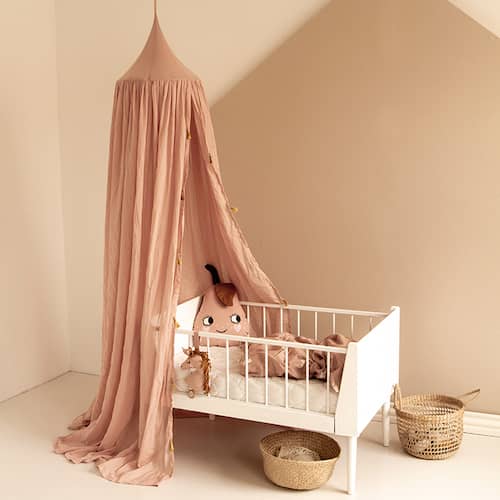 Een typisch accessoire die niet mag ontbreken in de babykamer is een bedhemel of ook wel canopy genoemd. Een bedhemel boven het wiegje of het ledikant geeft je baby een veilig en geborgen gevoel. Daarnaast geeft het de babykamer een lieflijke en romantische uitstraling.
